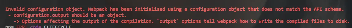 需要注意output,虽然和我们的 entry 是一对,但是 entry 可以配置各种类型,而我们的 output 只能配置一种类型,就是 object 类型,其他类型都会报如下的错误: