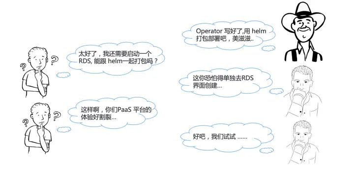 确实,我们内部对接复杂应用云原生化的时候,也推荐他们编写 Operator,但是经常出现这样一段对话。