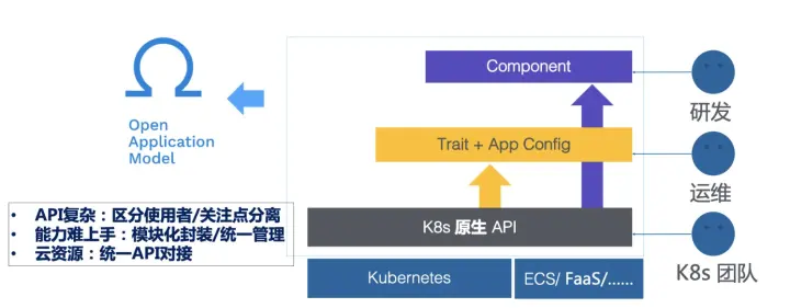 OAM(Open Application Model) 正是这样一个以应用为中心的 K8s API 分层模型: