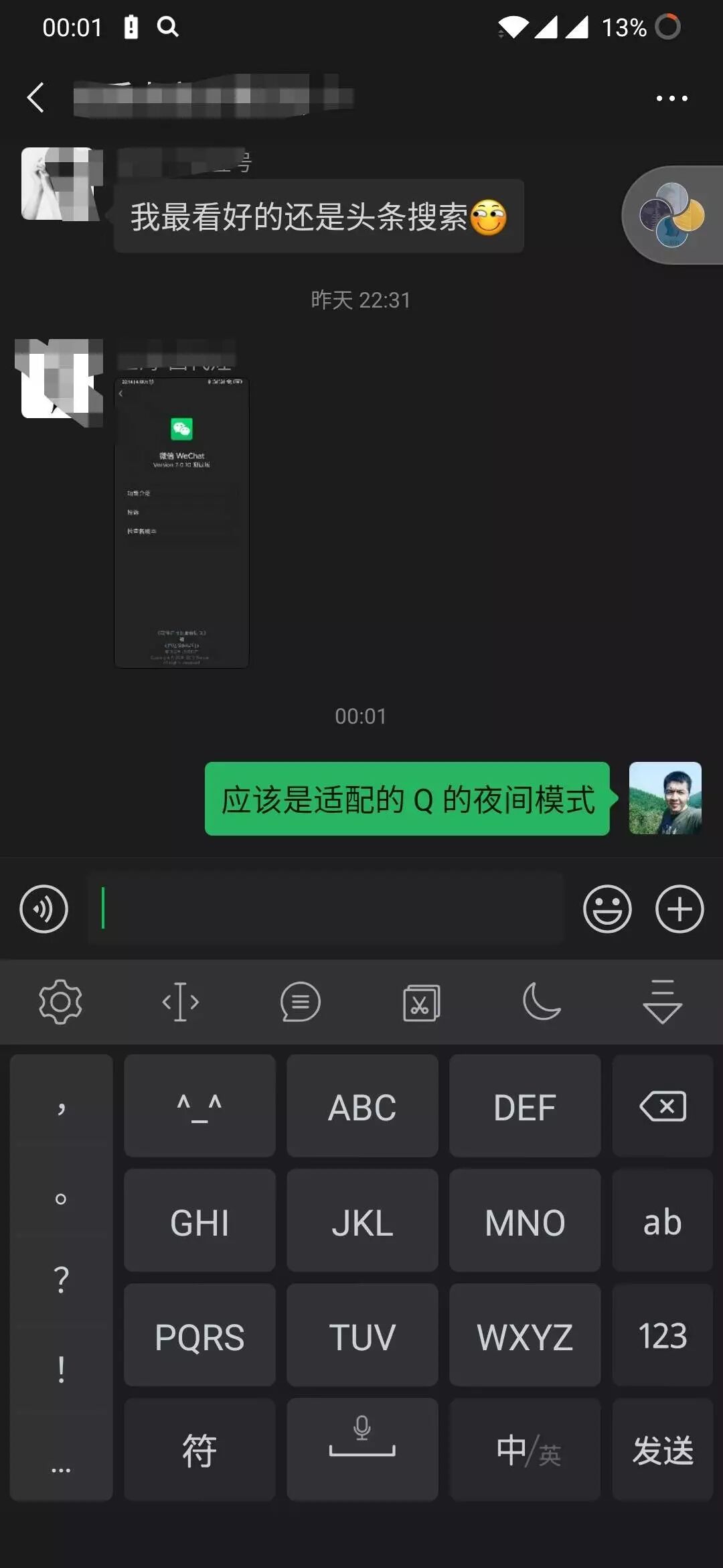 说明:截图中的键盘是讯飞输入法,也适配了暗黑模式,看上去浑然一体,有木有~