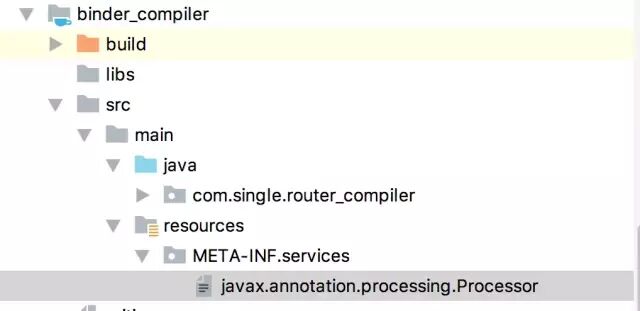 在main下面生成javax.annotation.processing.Processor文件,里面写上要被启动的扫描器: