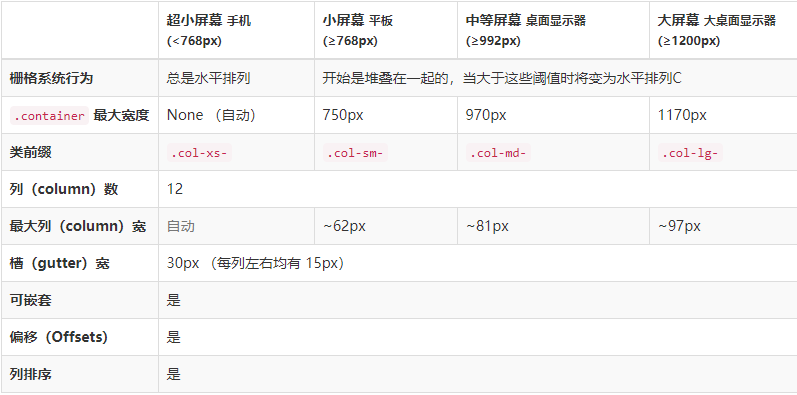 通过下表可以详细查看 Bootstrap 的栅格系统是如何在多种屏幕设备上工作的