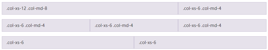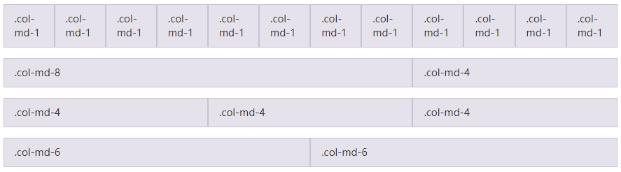 栅格系统中的列是通过指定1到12的值来表示其跨越的范围。例如,三个等宽的列可以使用三个 .col-xs-4 来创建。