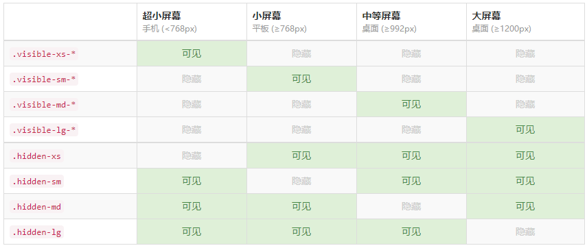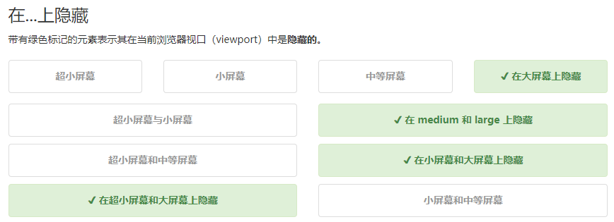 <span class="visible-md-block visible-lg-block">✔ 在 medium 和 large 上隐藏</span>