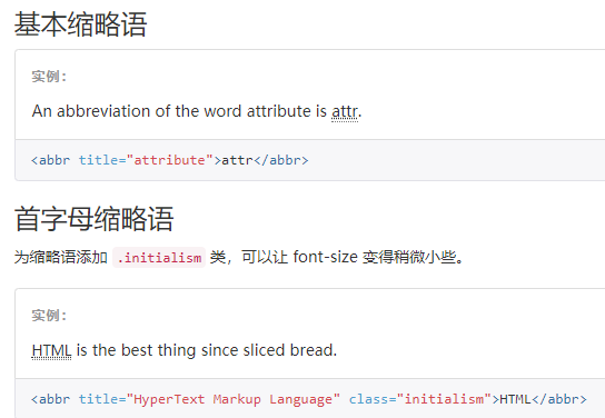 当鼠标悬停在缩写和缩写词上时就会显示完整内容,Bootstrap 实现了对 HTML 的 <abbr> 元素的增强样式