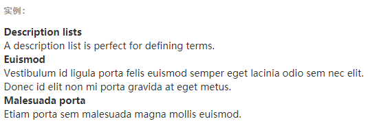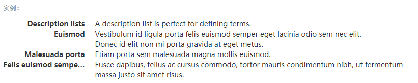 .dl-horizontal 可以让 <dl> 内的短语及其描述排在一行。开始是像 <dl> 的默认样式堆叠在一起,随着导航条逐渐展开而排列在一行。