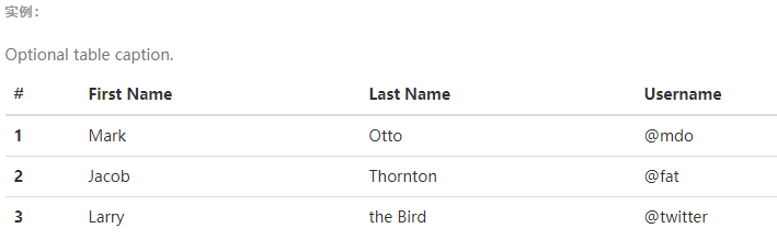为任意<table> 标签添加 .table 类可以为其赋予基本的样式 — 少量的内补(padding)和水平方向的分隔线