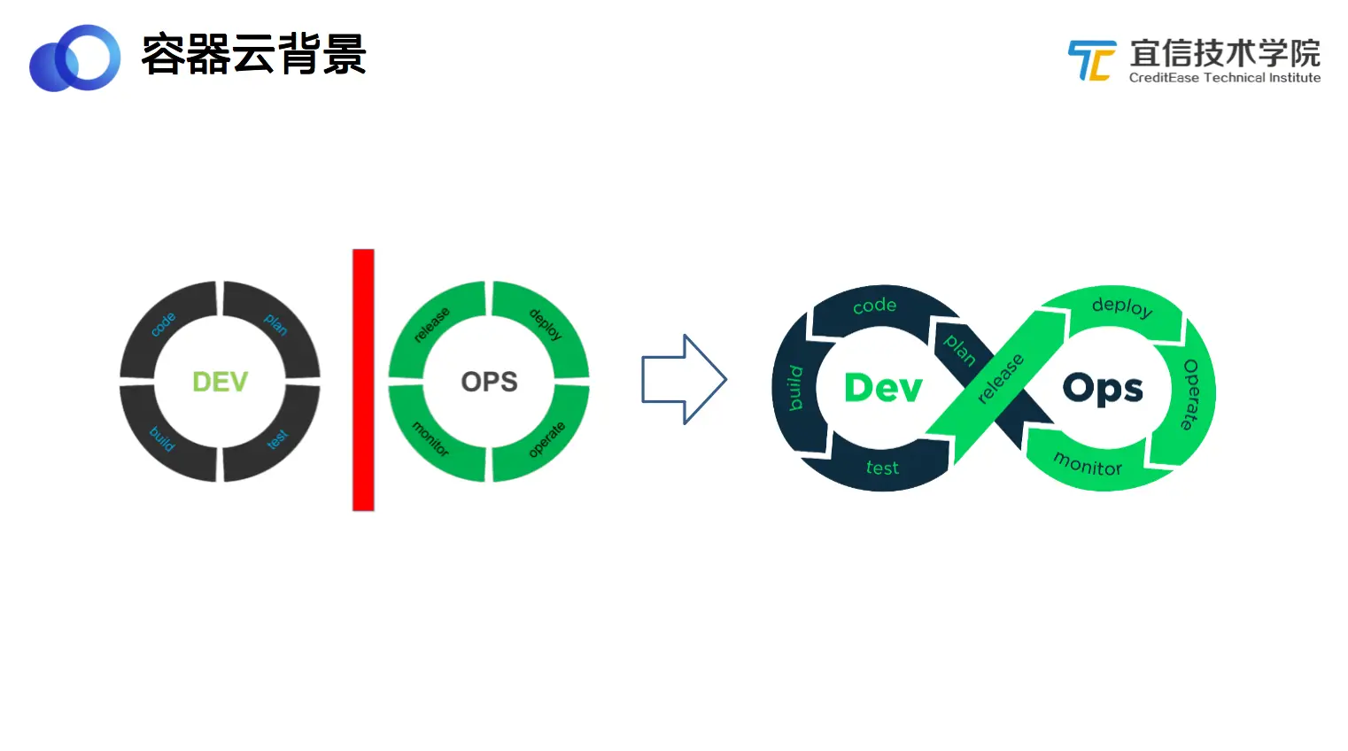 - DevOps整合。DevOps和敏捷开发的理论已经提出很多年了,为什么DevOps一直没有得到很好的推进和实践呢?因为缺乏一种工具把Dev和Ops联系起来,而容器的诞生很好地解决了这个问题。开发人员在开发完代码并完成测试以后,可以拿着测试的产物直接到生产环境部署上线,而部署的问题可以直接反馈给开发,形成闭环。也就是说,通过容器的方式,可以实现一次构建多次运行。由此可见,通过容器的方式实现DevOps是最佳的方案,企业亟需一套成熟的平台帮助开发和运维人员保持各个环境的一致性和快速发布、快速回滚。