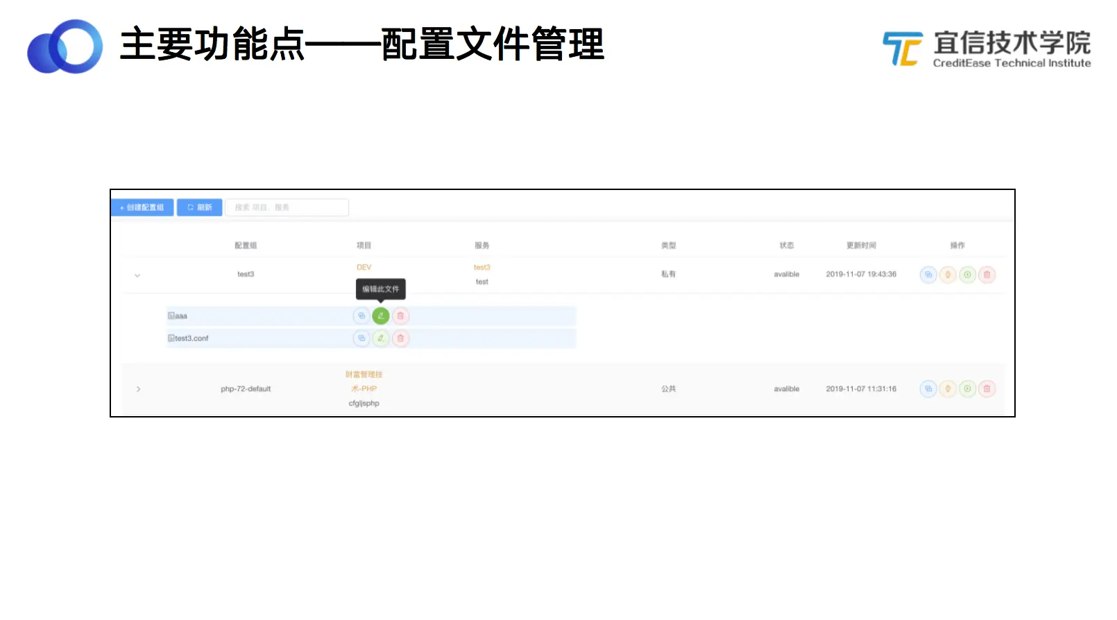就是说当用户在页面上传或编译某个配置文件以后,平台会自动把配置文件刷新到容器里,容器就可以使用最新的配置文件了。为了避免用户误删配置文件,当系统发现配置文件被使用则不允许删除。