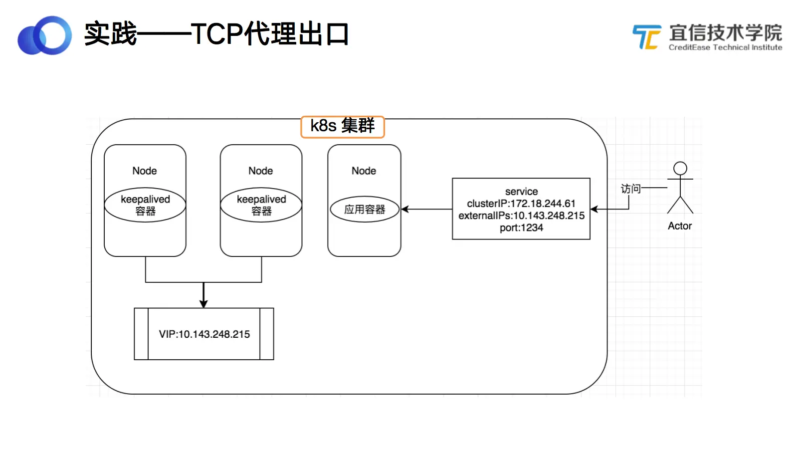 在实际过程中我们经常遇到网络对外提供服务的场景,系统中除了Nginx提供的 HTTP反向代理以外,还有一些需要通过TCP的方式对外提供的服务,我们通过系统中指定的两台机器安装Keepalive和配置虚IP的方式,对外暴露TCP服务。