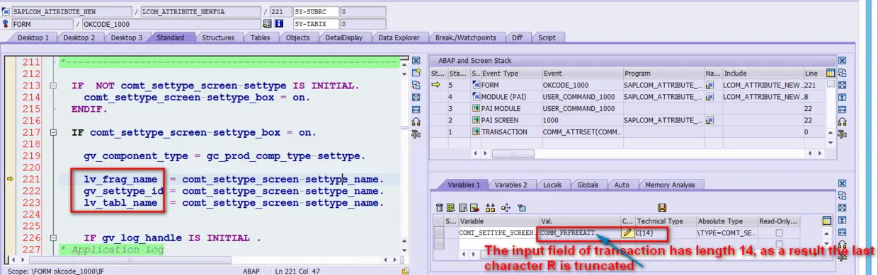 Root cause is, the correct settype and persistence table name should be COMM_PRFREEATTR, unfortunately, when you enter tcode COMM_ATTRSET, the last character R of name is truncated: