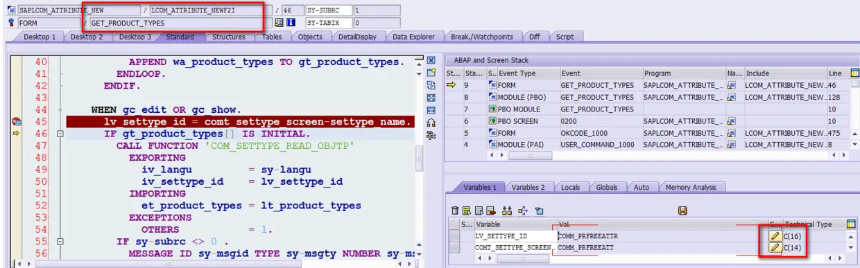 For example, settype COM_COMMERCIAL could be opened via tcode COMM_ATTRSET: