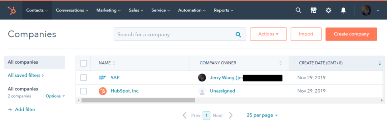 在网页查看所有的company: app.hubspot.com/contacts/67…?