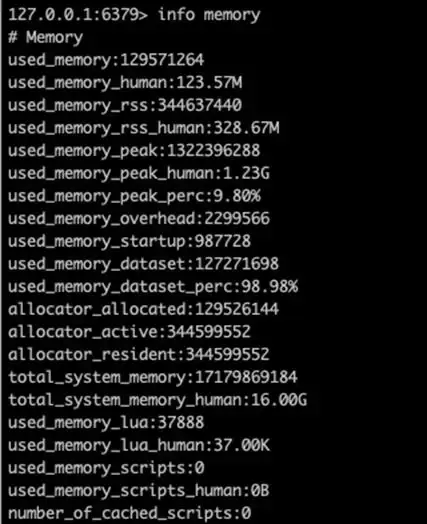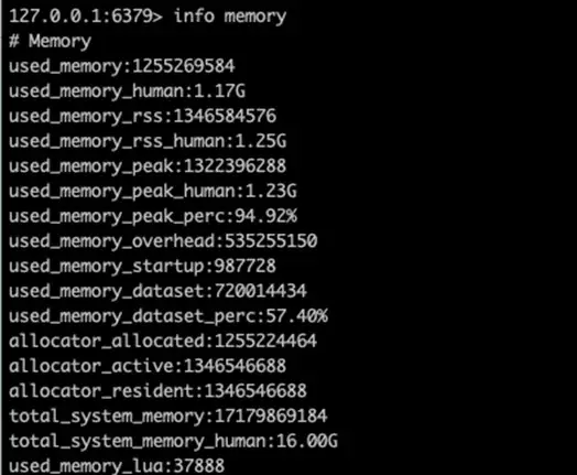 可以看到,这1千万条数据,占用了redis共计1.17G的内存。当数据量变成1个亿时,实测大约占用8个G。