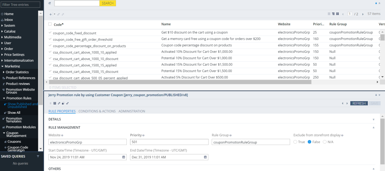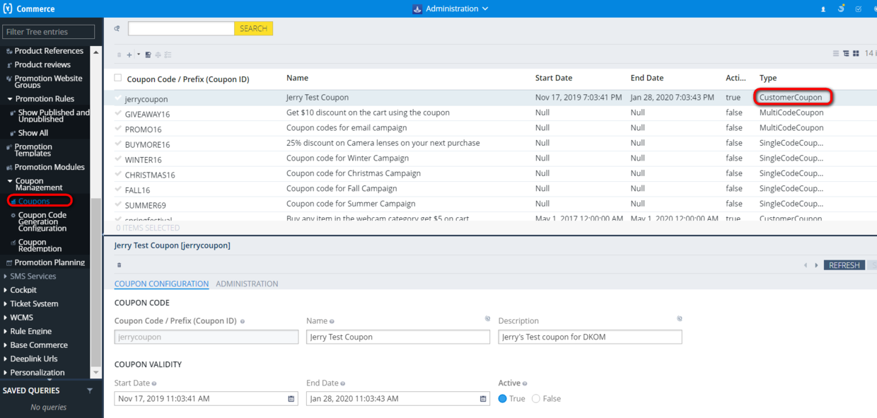 登录Backoffice,在Coupon菜单里创建一个新的类型为Customer Coupon的优惠券: