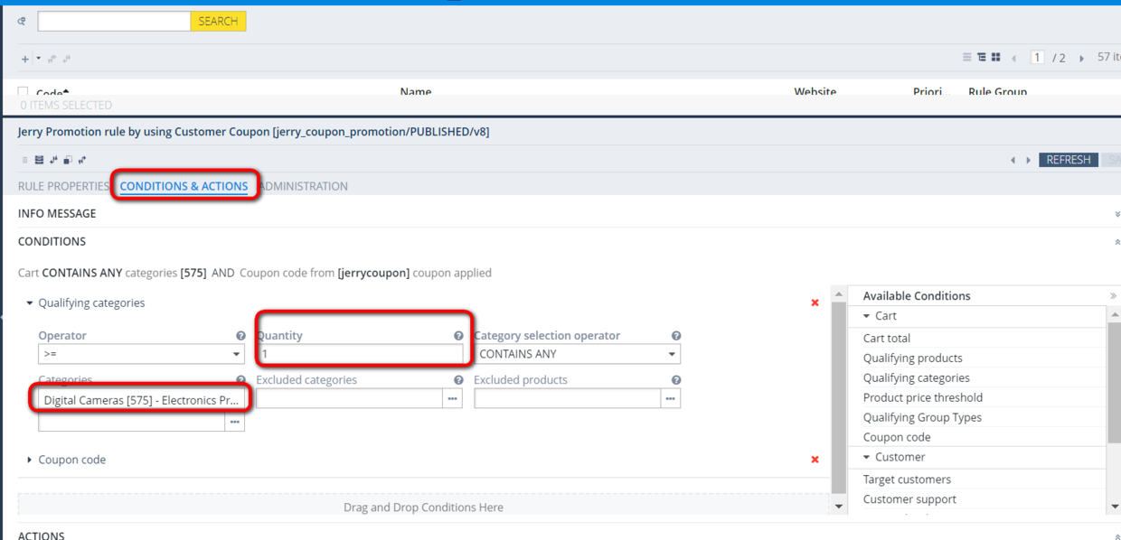 当购买金额Quantity大于1,且购买的产品种类是575,数码相机时,触发这条规则。