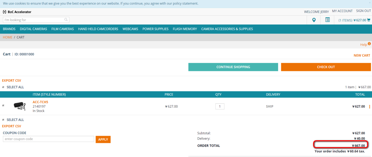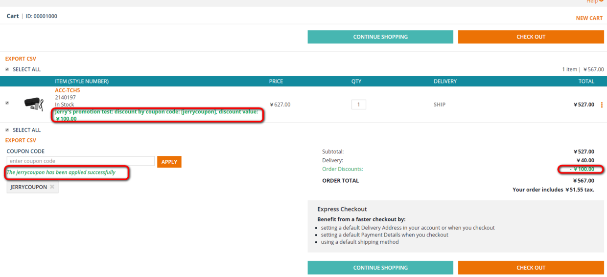 从下拉列表里选择名为jerrycoupon的优惠券,点击Apply: