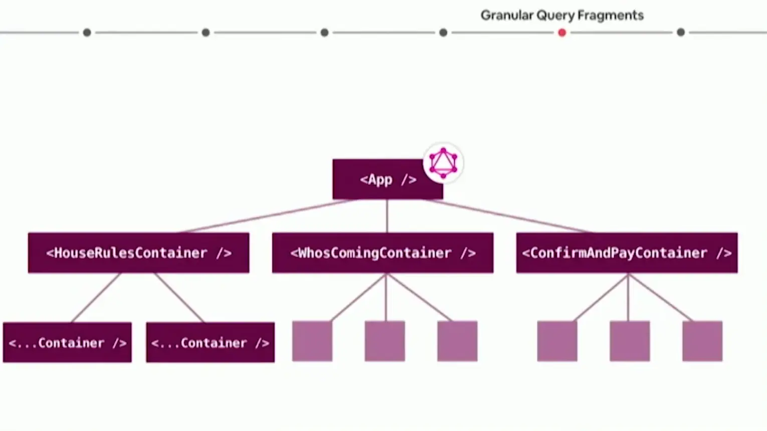 然后我们会将子节点的查询条件上升整合至父节点,直至App节点,这个过程可以一直重复循环直至整个树都转换完成。这时候App节点就有一份完整的整合好的查询条件,由于每个节点都只获取它所需要的数据,我们几乎可以认为App节点的查询条件也是近似于最简洁的数据格式。