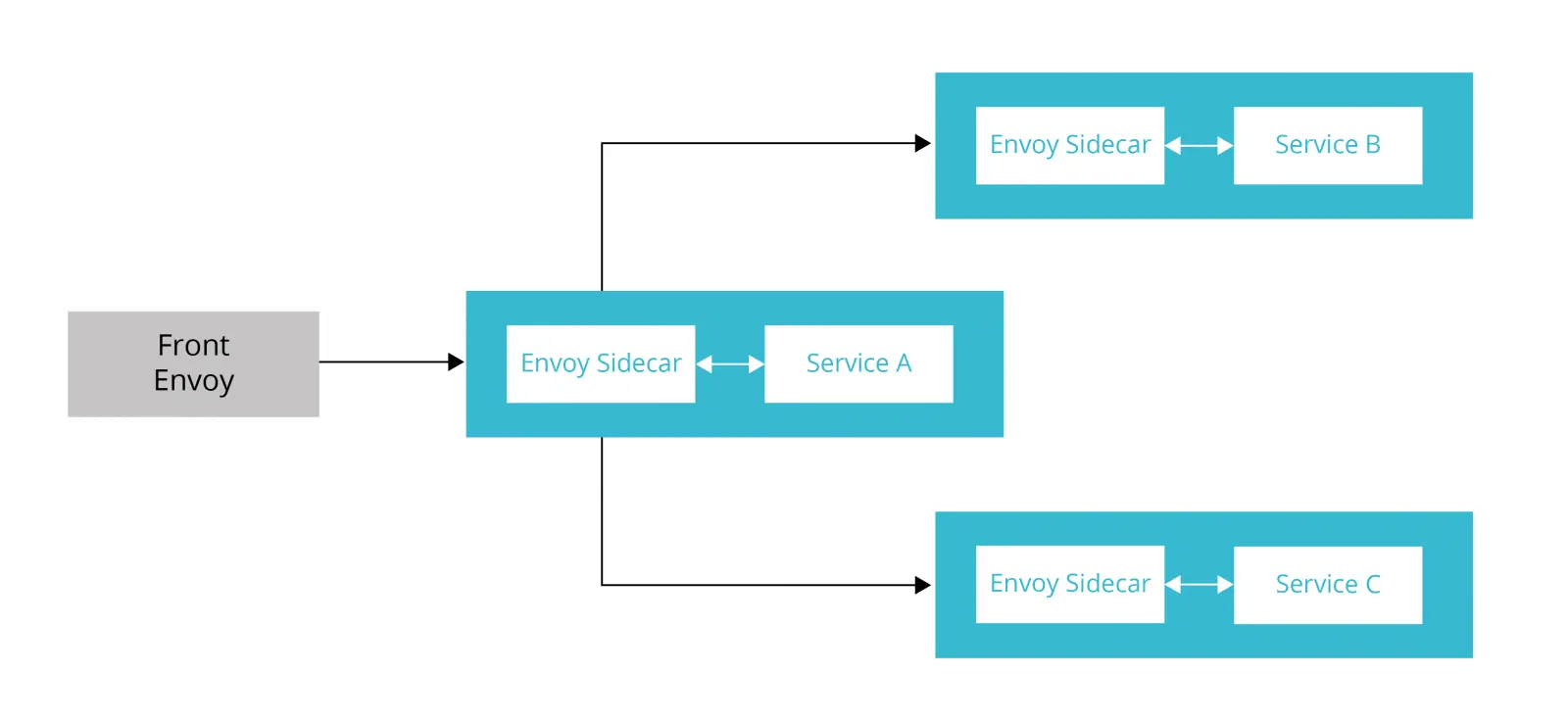 通常情况下,有多个“Serivce A”实例,并且Envoy支持多种负载均衡算法来路由流量。在本例中,我们使用了一个简单的循环算法。