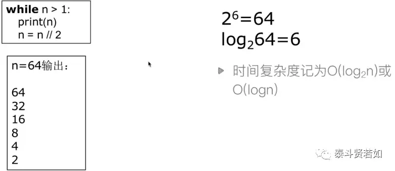 当你的循环减半的时候,时间复杂度就会变为O(logn)。所以你可以这样记,当算法过程出现循环折半的时候,复杂度式子中会出现logn。