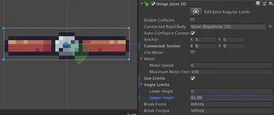 其中 Motor 下面的参数可以用来控制承受力的大小以及控制速度。如果勾选了 Use Limits 并设置 Angle Limits 的话可以改变旋转的角度,如下: