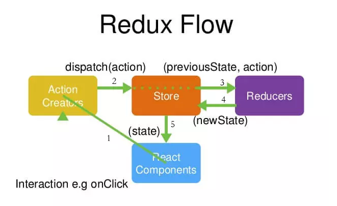 接下来通过官方提供的一张图,我尝试解释一下redux的工作流程。
