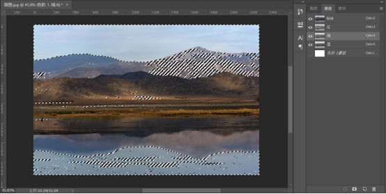 亮部被提亮,但不够透亮,接下来将片子的亮部调出选区来,在通道中,选择绿色通道,将通道作为选区载入,这样载入的就是亮部,然后添加色阶调整层