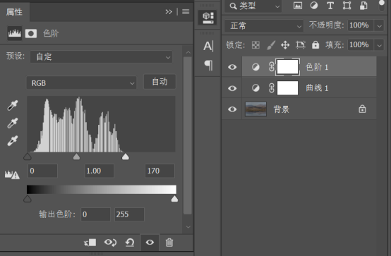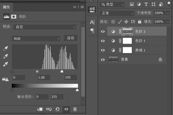 片子灰度减少,但是亮部的灰还是比较多,打开色阶调整层,做如下调整。