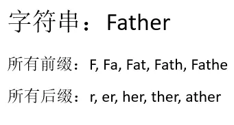 不包含字符串最后一个字符的,从字符串第一个字符串开始的连续子串。