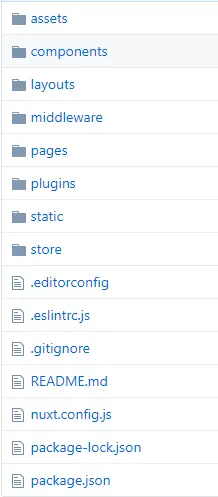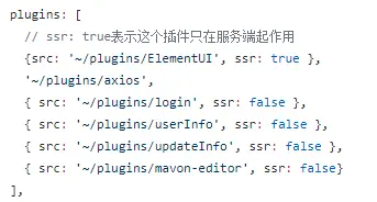 这个是脚手架生成后的目录结构,nuxt的特点就是,不需要我们再去额外的配置路由,你只需要在pages目录下直接新建页面,nuxt会自动帮我们生成对应的路由。全局的插件,比如axios拦截器,或者自定义的组件,都放到plugins目录下,然后在 nuxt.config.js 中配置一下即可:
