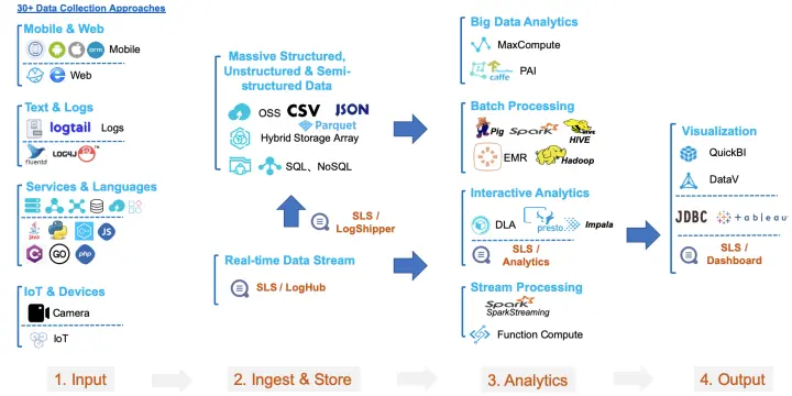 数据管道(Data Pipeline)是实现系统之间数据迁移的载体,因此包括数据的采集、传输链路、存储队列、消费/转储等都属于数据管道的范畴。在SLS这里,我们专为数据管道相关的功能集合起了一个单独的名称:LogHub,LogHub提供数30+种数据接入方式、提供实时数据管道、对接各类下游系统等功能。