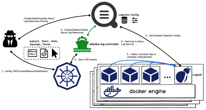 随着云原生落地,Logtail的数据采集在18年初就开始全面支持Kubernetes,并提供了CRD(CustomResourceDefinition)用于日志和Kubernetes系统的集成,目前这套方案已经应用在了集团内、公有云几千个集群中。