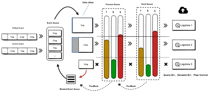 - 采用事件处理不阻塞的机制保证即使在配置阻塞/停采期间发生文件轮转依然具有较高的可靠性