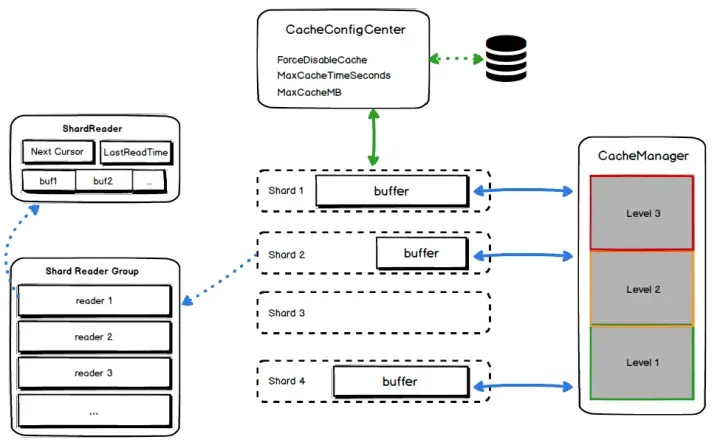 - 全局缓存管理,对于每一个Shard的消费计算消费权值,优先为权值高的Shard提供缓存空间;
