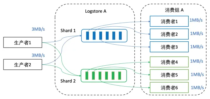 - ConsumerGroup分配的最小单位是Shard,SLS的一个Shard在不开启索引的情况下可以支撑几十MB/s的写入,而很多消费端单机并没有能力处理几十MB/s的数据,造成严重的生产、消费不对等。