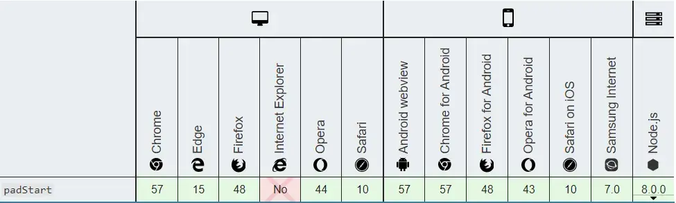 String.trimStart和String.trimEnd 两者兼容性一致,下图以trimStart为例: