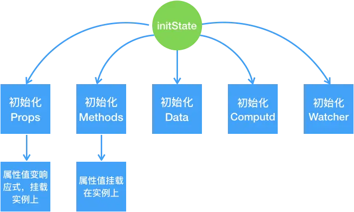 initState 方法主要是对 props、methods、data、computed 和 wathcer 等属性做了初始化操作,并代理到 vm实例上。