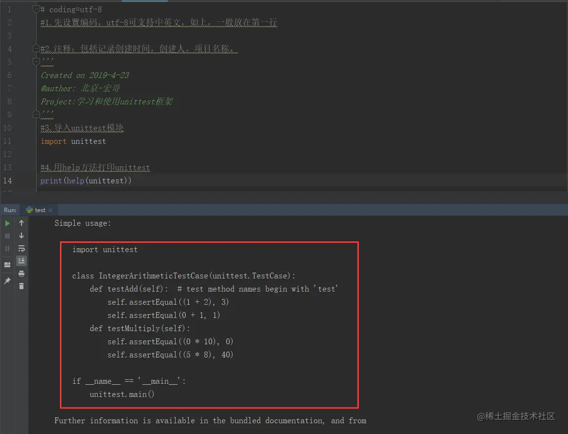 2、先导入 unittest用 help 函数查看源码解析查看描述: