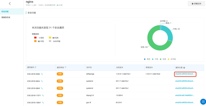 在应用交付环节,ACR EE 支持自动发起静态安全扫描并自定义配置安全阻断策略。一旦识别到静态应用中存在高危漏洞后,可自动阻断后续部署链路。用户可基于漏洞报告中的修复建议,更新优化构建成新的镜像版本,再次发起交付。