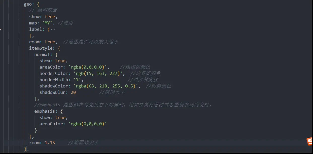 echarts.registerMap('MY', myJson) //注册 myJson为你的geoJson数据配置geo: