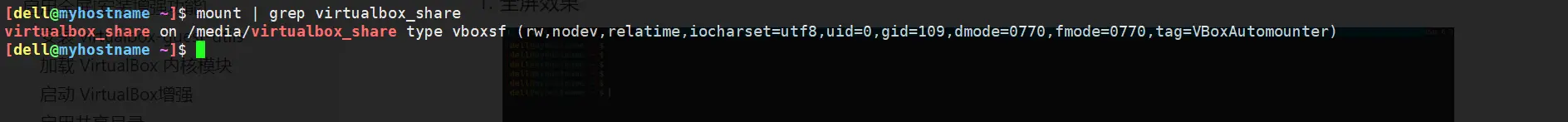 $ sudo mount -t vboxsf <共享目录的名字> <客户机系统的挂载点> -