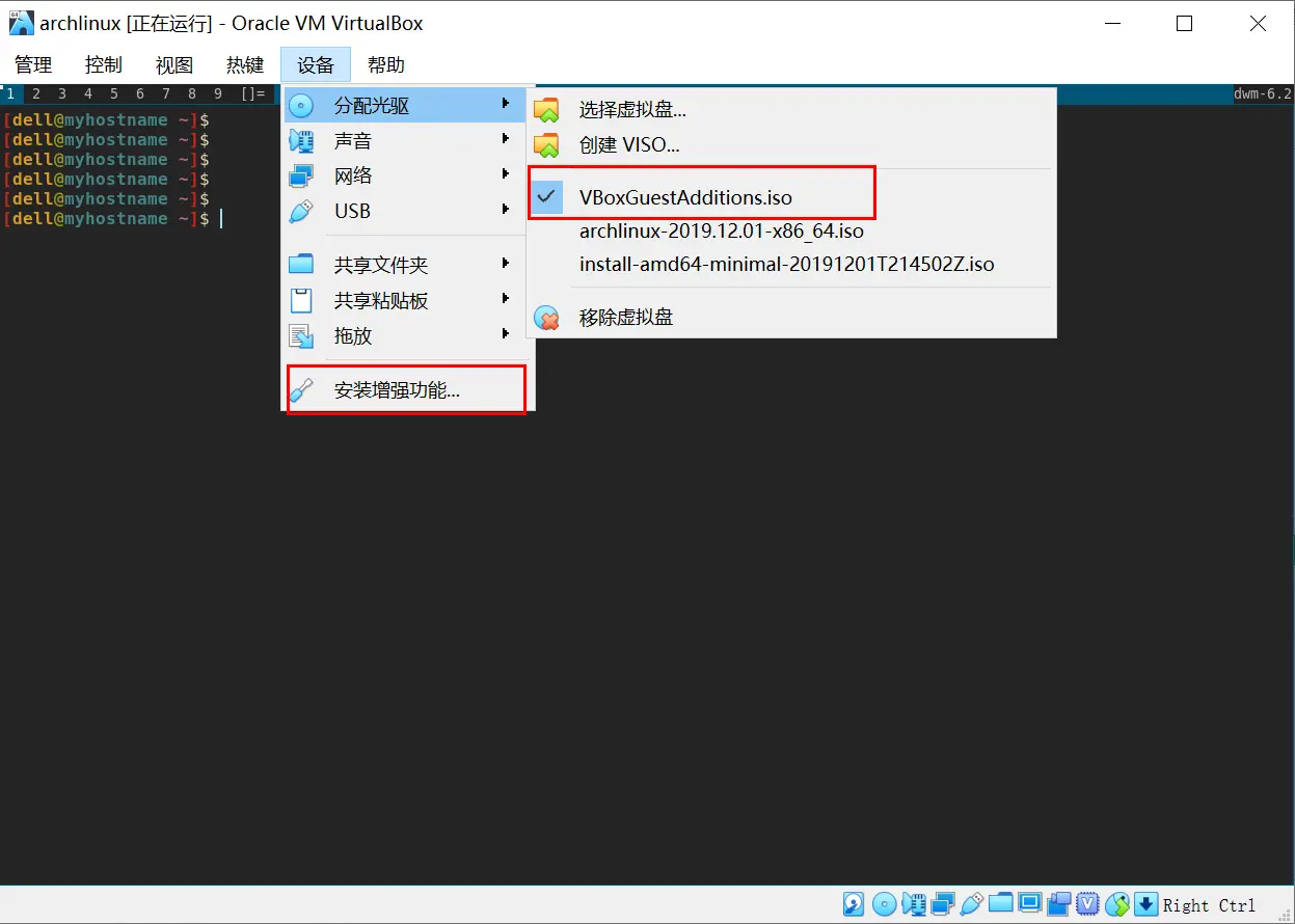 加载 VirtualBox 内核模块和启动 VirtualBox增强