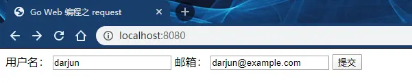 启动服务器,进入主页localhost:8080/,显示表单。填写信息,点击提交: