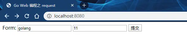 FormValue方法返回请求的Form字段中指定键的值。如果同一个键对应多个值,那么返回第一个。如果需要获取全部值,直接使用Form字段。下面代码将返回hello对应的第一个值: