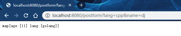 可以看出,查询字符串中的键值对和表单中解析处理的合并到一起了。同一个键下,表单值总是排在前面,如[golang cpp]。