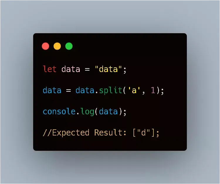 没关系,split()通过提供一个可选的limit参数可以为您提供便利。但是要注意的是,一旦达到限制,split就会停止尝试拆分字符串,并仅提供到目前为止已分离的内容。因此,假设我们只希望我们的“data”字符串仅由字母“ a”拆分,那么将得到如下所示的结果:
