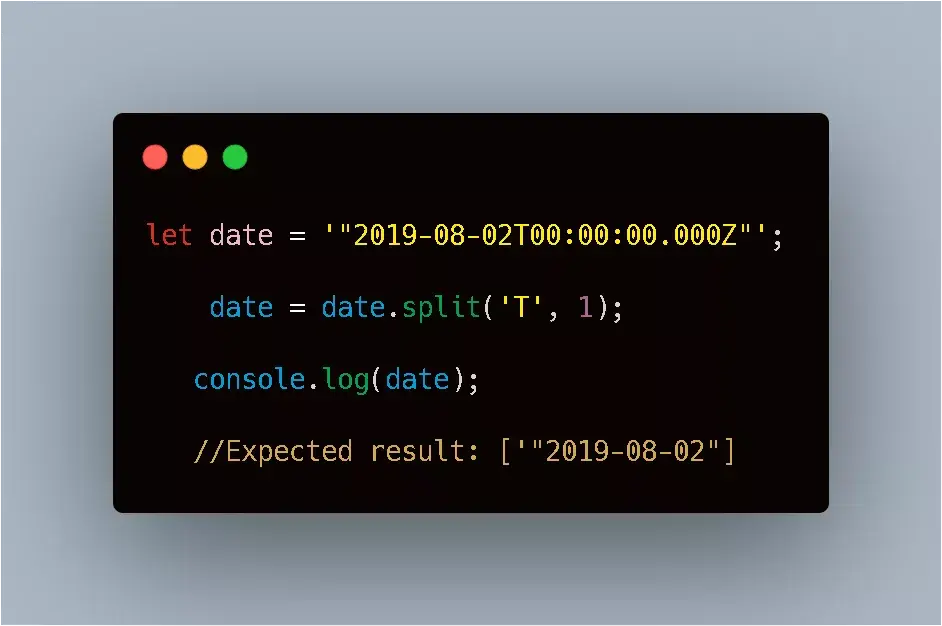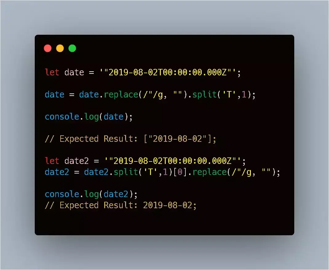 因而组件返回的数据是这种形式的日期“'2019-08-02T00:00:00.000Z”'。但是,我需要使用以下格式:'2019-08-02'。因此,我需要将时间与日期时间字符串分开,并从字符串中删除双引号。