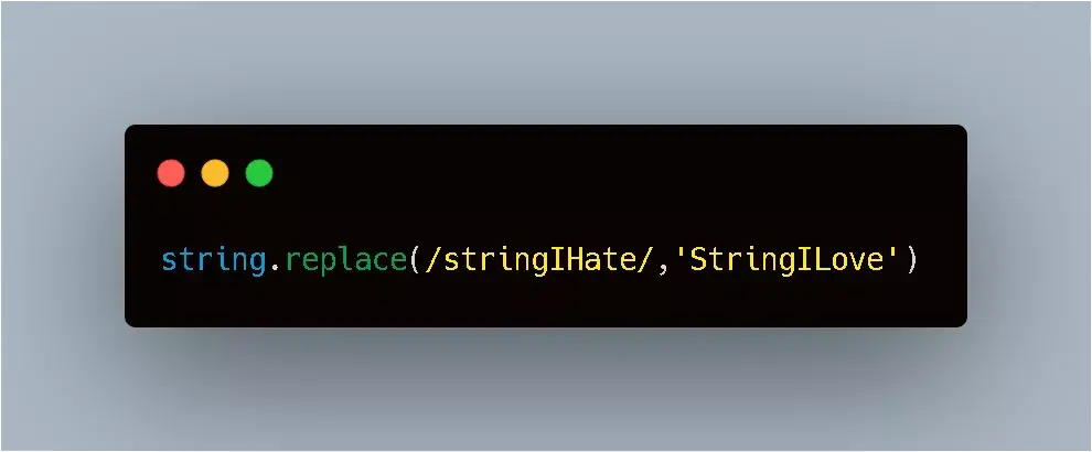 它使用双正斜杠来替换要删除的字符串。这还允许您添加诸如字母i之类的内容,以指示您希望搜索不区分大小写,或者添加g指示您希望搜索是全局的,即在字符串中找到的所有位置。