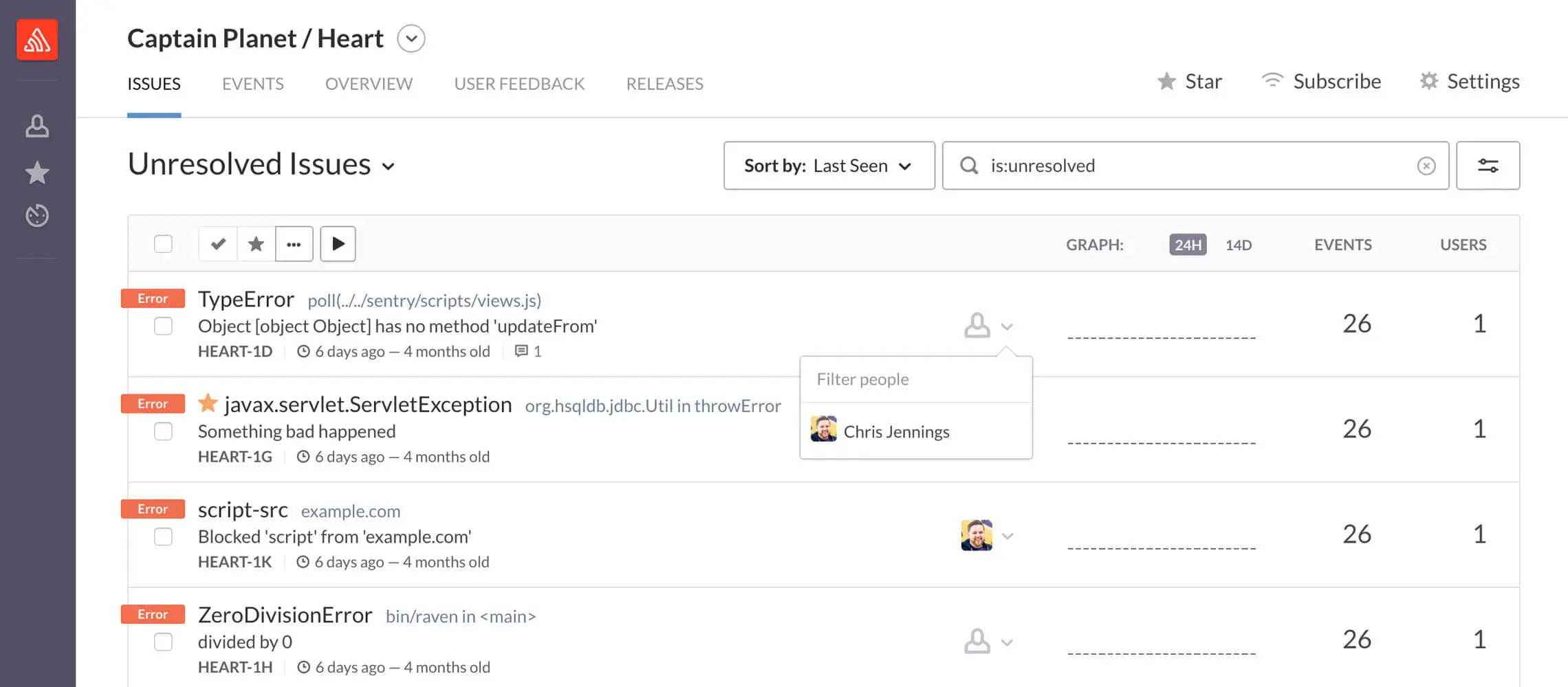 sentry 是一个实时的错误日志追踪和聚合平台,包含了上面 sourcemap 方案,并支持更多功能,如:错误调用栈,log 信息,issue管理,多项目,多用户,提供多种语言客户端等,具体介绍可以查看 ,,这里暂不展开。