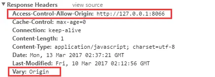 Access-Control-Allow-Origin:http://127.0.0.1:80663. 指定域名的 Access-Control-Allow-Origin 的响应头中需带上Vary:Origin。
